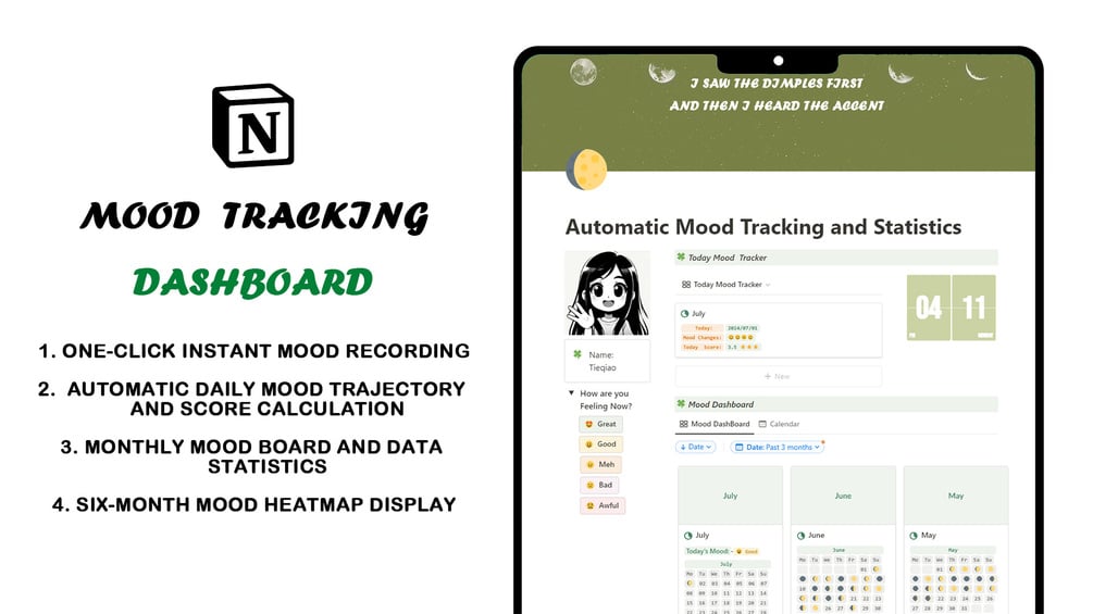 - Daily Mood Trajectory and Automatic Score Calculation: Visualize your daily mood changes and get automatic mood scores to monitor your emotional patterns easily.
